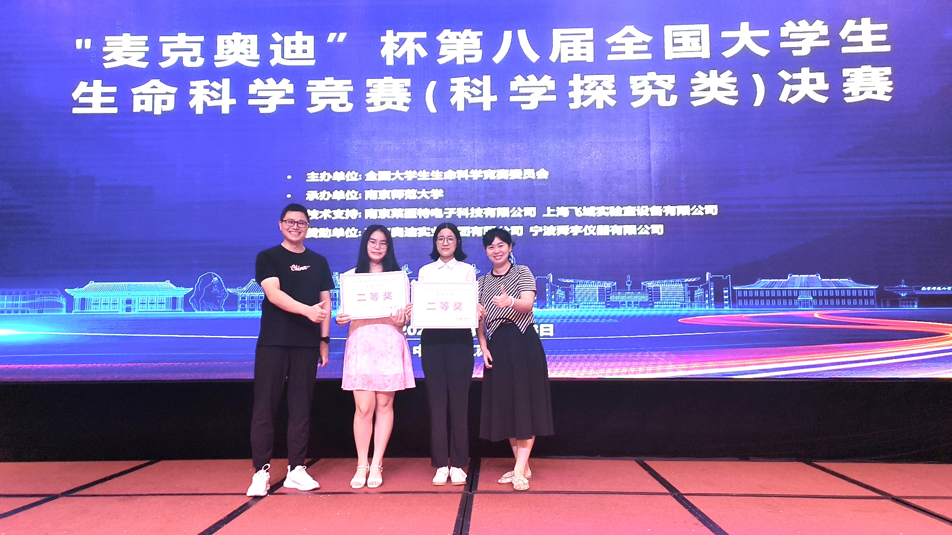 本网讯(生科院 王旭)8月18日上午,第八届全国老员工生命科学竞赛(科学探究类)决赛圆满落幕。本次决赛由全国老员工生命科学竞赛委员会主办,南京师范大学承办。共有全国76 所高校参加,其中,线下参赛项目 194 项、线上参赛项目 114 项。