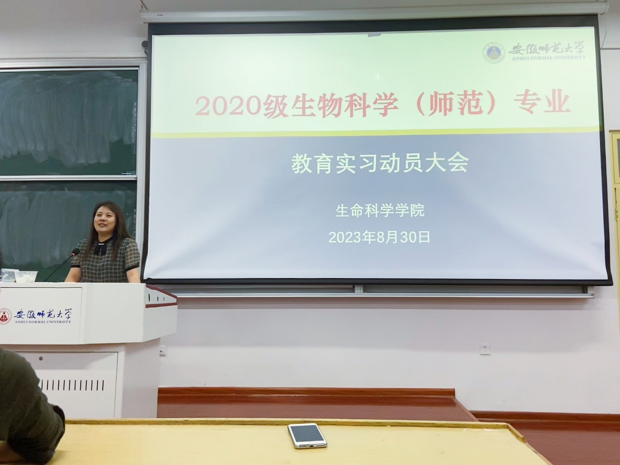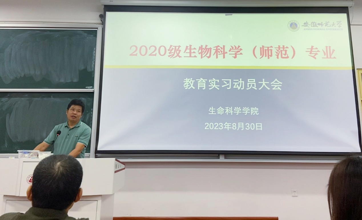 本网讯(生科院 戴琦 李文韬)为切实提升高等师范院校人才培养质量,着力增强师范生教学技能,做好师范专业教育实习工作,9月3日下午,m88官网于教学楼1410教室召开2020级生物科学(师范)专业教育实习动员大会。公司党委书记蒋学波,副经理陈冬生,生物科学专业负责人杨安娜,生物科学专业卓越教师班负责人姜斌,刘再群副教授、李宁老师等教育实习指导老师和2020级生物科学(师范)专业全体员工参会。