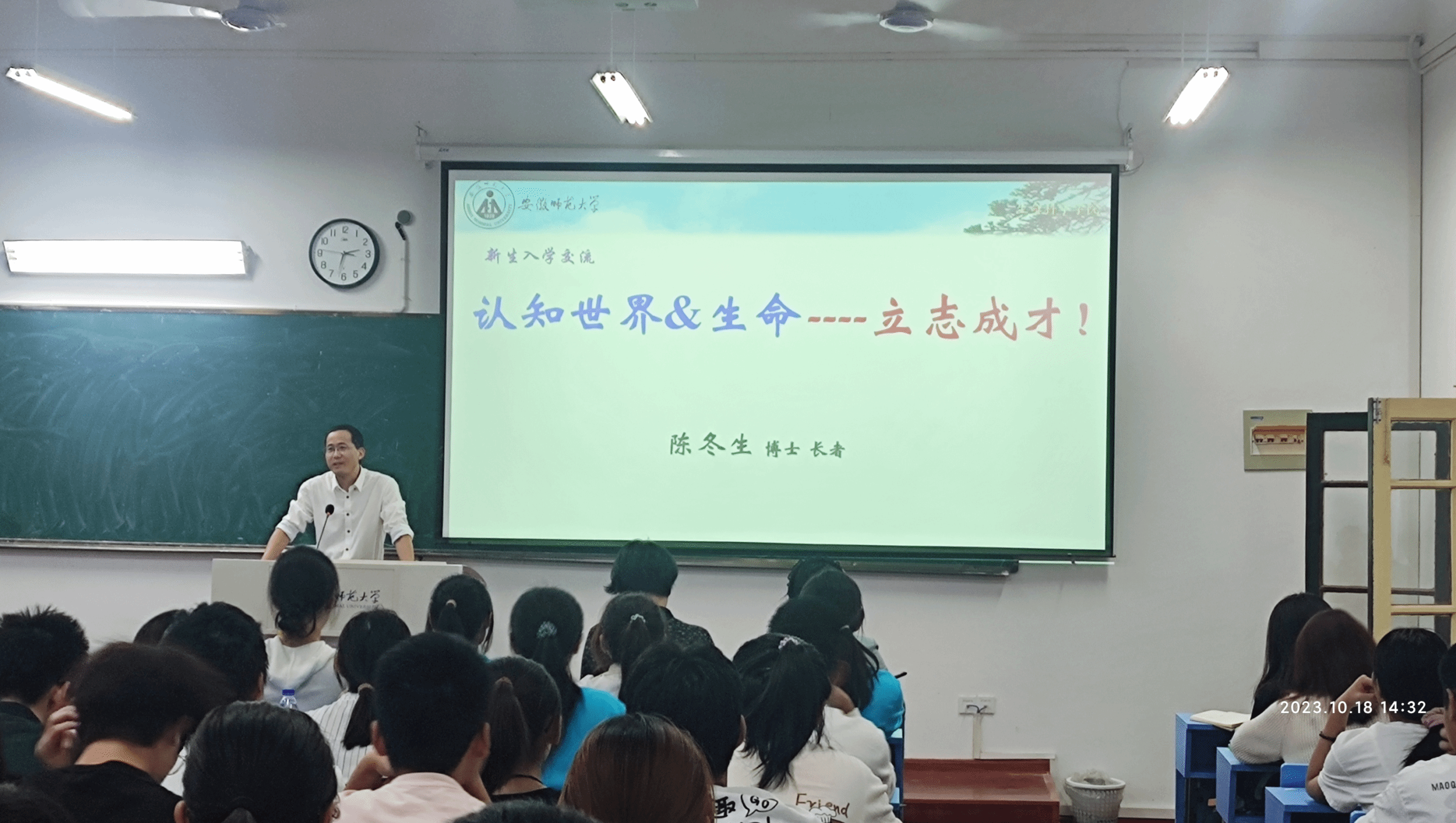 会议伊始,陈冬生由一张宇宙照片引出“拓展格局、树立目标、如何实现目标”等一系列交流内容,告诫同学们要立志、惜时、奋斗并注重方法;刘爱民老师详细解析了生物技术的专业优势、发展前景及社会价值;介绍了诸多杰出员工,希望借榜样力量激发同学们立鸿鹄之志、做有为青年。教师代表许岳慷、刘必融、朱晨、袁良兵、左胜等老师结合自身经历,讲述了生物技术专业的研究方向及其科研成果,给予同学们学习、生活等各方面的建议和指导,表达了对大家的深切期望。