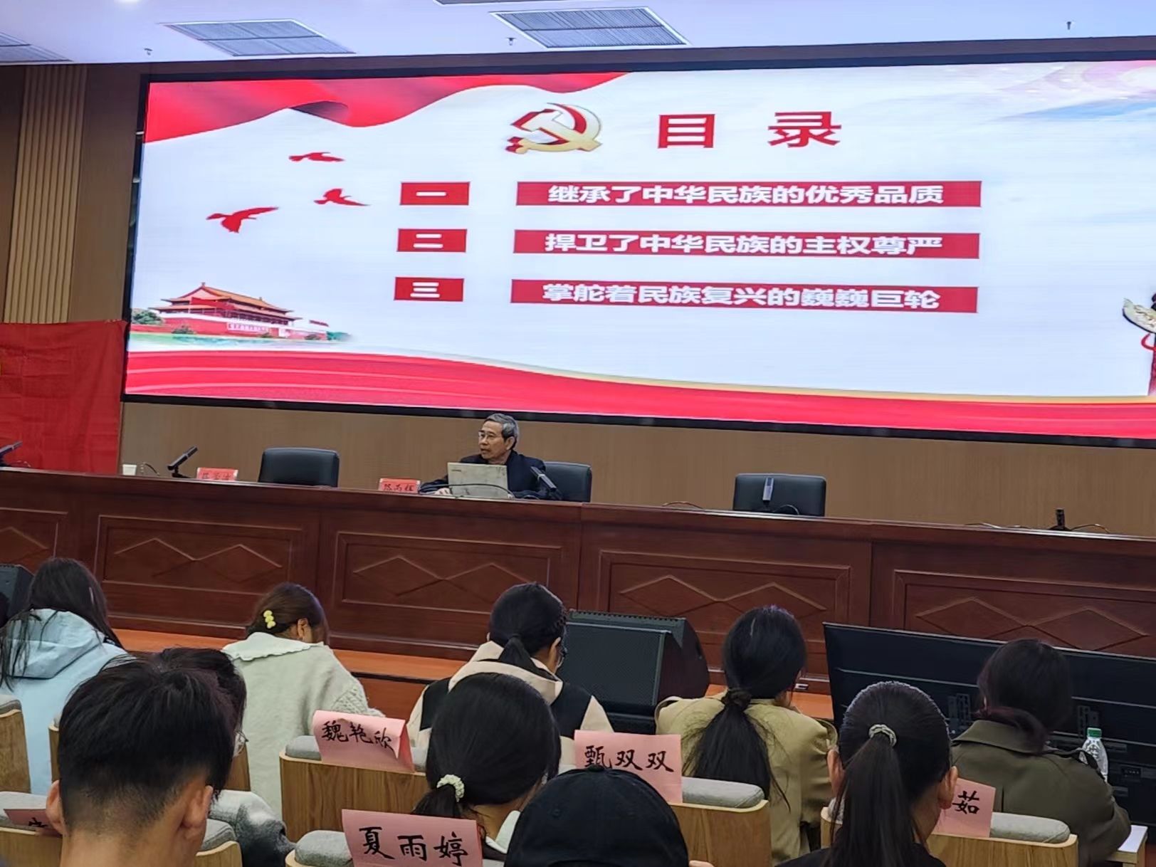 中共二十大代表、全国优秀共产党员、全国模范教师、全国最美思政课教师,马克思主义公司路丙辉教授以《我们共产党人》为题为全体学员授课,他以“担当”“勤劳”“忠诚”等为关键词,指出共产党员始终践行全心全意为人民服务的宗旨,中国共产党团结带领中国人民经过百年英勇顽强的奋斗,中华民族迎来了从站起来、富起来到强起来的伟大飞跃。希望入党积极分子们要保持意气风发的精神,以先进模范为榜样,不断学习,用心工作,用最饱满的热情,最实际的行动来践行党的初心使命,不断向党组织靠拢。
