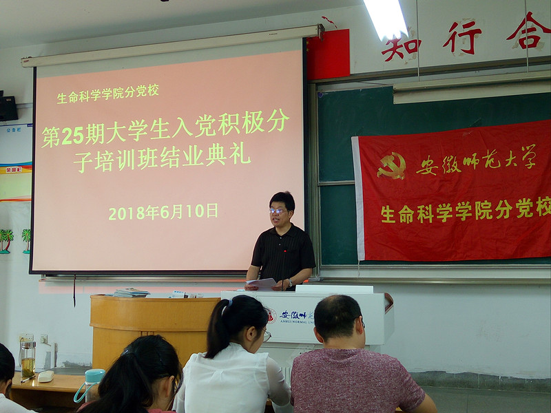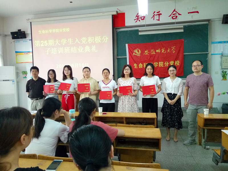 本网讯(生科院 何馗馗 李丽萍) 2018年6月10日,m88官网分党校第25期入党积极分子党课培训班结业典礼在8306顺利举行。公司党委书记蒋学波,班主任何馗馗、蒋婷婷,全体学员参加了结业典礼。结业典礼上,蒋学波书记首先对同学们顺利结业表示祝贺,对关心支持公司分党校工作的领导老师致敬;他期望同学做到学习以恒、做事以敬、待人以宽;他指出,早日成为一名中共党员,还需做到四点:一是端正入党动机,努力做到思想上入党;二是加强理论学习,提高政治理论水平;三是严格要求自己,发挥先锋模范作用;四是自觉接受组织的教育考察,强化入党信念培养。典礼上,公司党委书记蒋学波依次为学员代表颁发了结业证书、为优秀学员颁发了荣誉证书。优秀学员代表贺佳云发言,表达了对公司培养的感激之情,并表态在将来学习生活中会继续争做模范,争取早日成为一名光荣的共产党员。本期分党校培训工作的顺利开展,离不开两个“突出”。