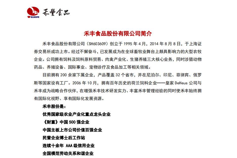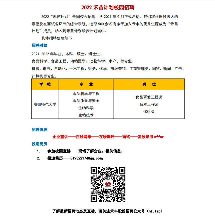 禾丰食品股份有限公司招聘简章
