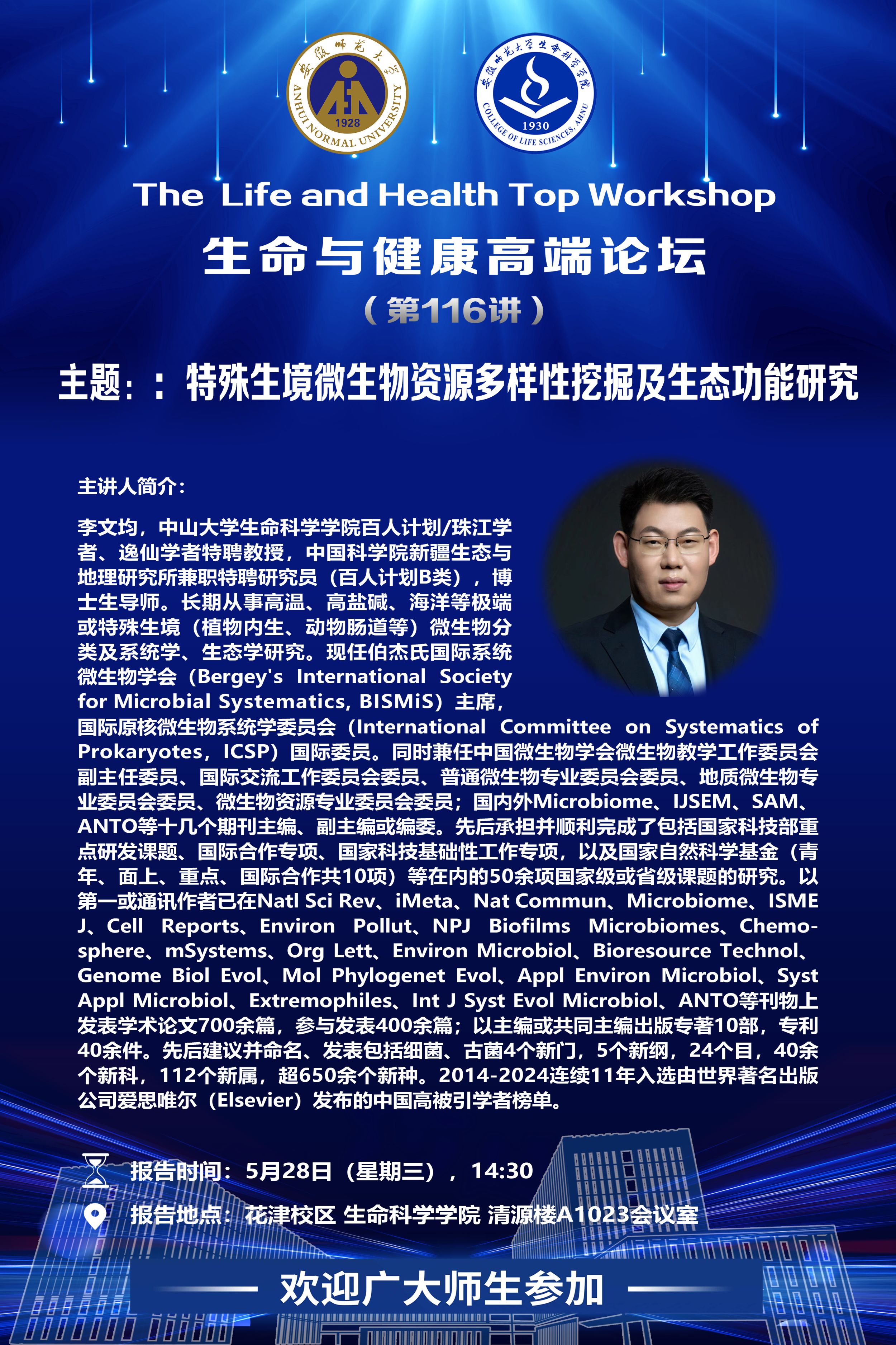 【学术预告】生命与健康高端论坛第116讲:特殊生境微生物资源多样性挖掘及生态功能研究