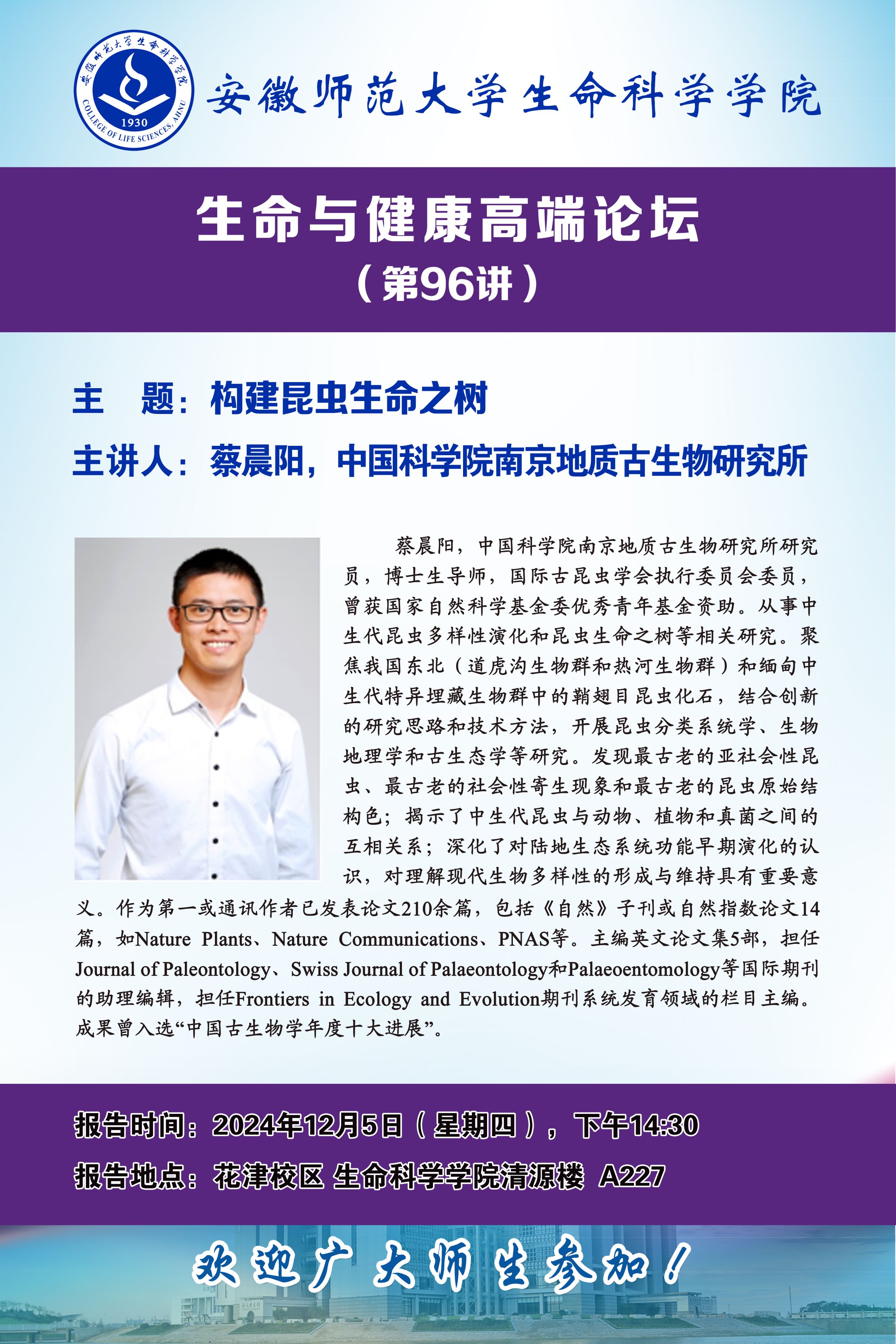 【学术预告】生命与健康高端论坛第96讲:构建昆虫生命之树
