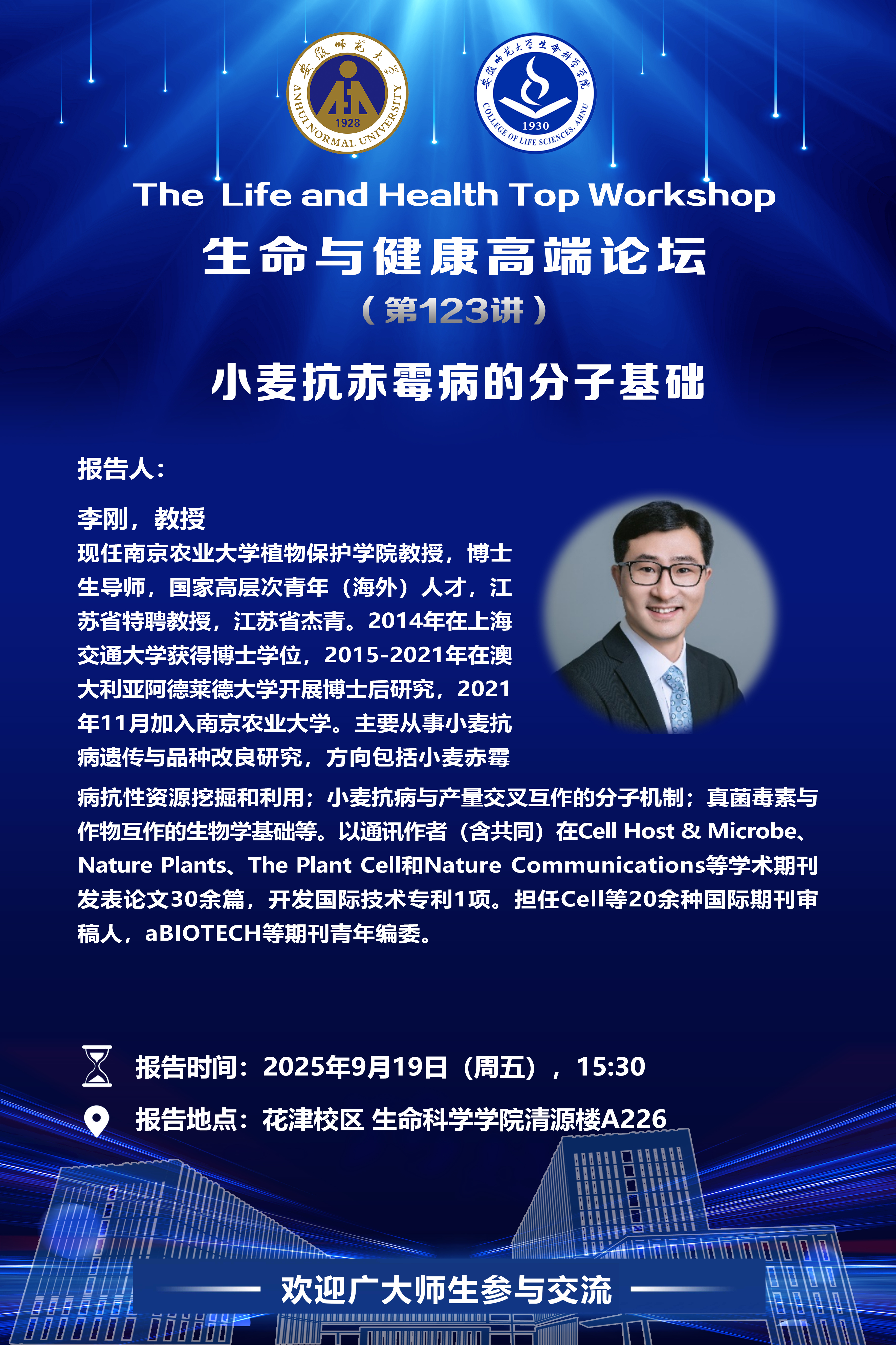 【学术预告】生命与健康高端论坛第123讲:小麦抗赤霉病的分子基础